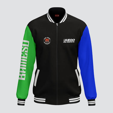 The Bameso Team Varsity Jacket is a premium outerwear piece designed exclusively for el juego del respeto. Crafted with quality materials, it offers durability and comfort, making it ideal for team members who value both style and performance. Its classic varsity design symbolizes unity and respect, perfect for representing your team with pride.